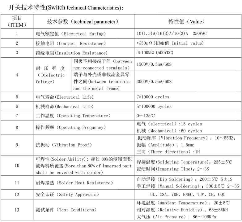 | 1 | رتبه بندی برق | 10(1.5)A/16(3)A/10(3)A 250VAC | |