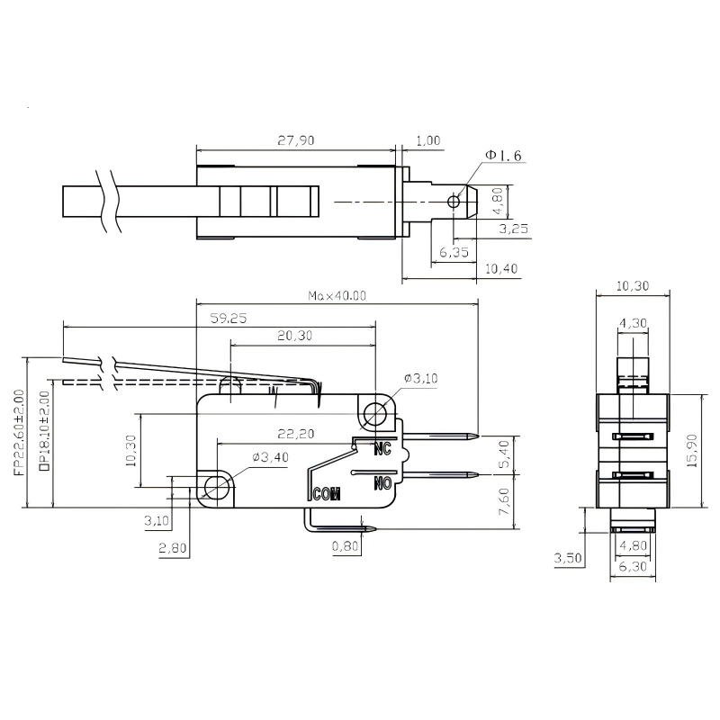 راه‌اندازی دقیق میلی‌ثانیه: از یک مکانیسم سریع عمل سریع با حرکت کوتاه 0.5-1.6 میلی‌متر و نیروی عملیاتی قابل تنظیم 0.25-4N استفاده می‌کند که پاسخ سریع و بدون تأخیر را برای جلوگیری از «محرک‌های اشتباه» ارائه می‌کند. مناسب برای سناریوهای با دقت بالا مانند کنترل درب مایکروویو و سنسورهای صنعتی.