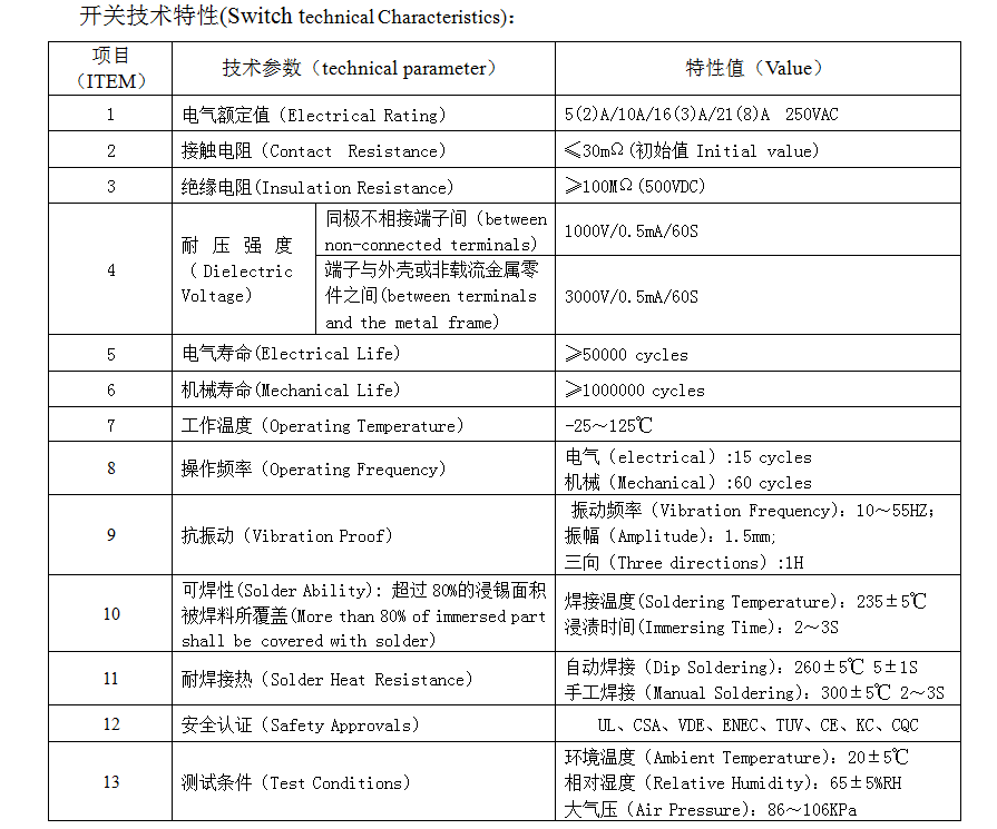| 2 | تماس با مقاومت | مقدار اولیه ≤30mΩ | |