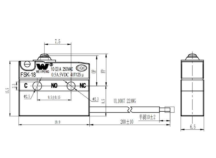 | 1 | رتبه بندی برق | 0.1A 5(2)A 10(3)A 125/250VAC 0.1A 5A 36VDC | |