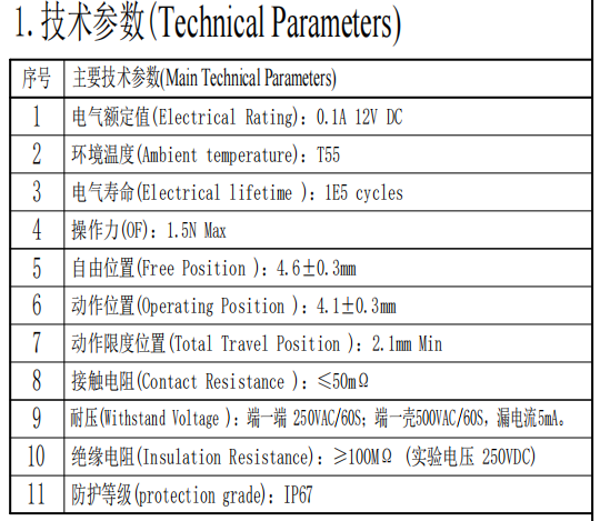 | 1 | امتیاز الکتریکی | 0.1A 12VDC | |