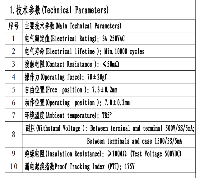 پارامتر میکرو سوئیچ (مشخصات)
